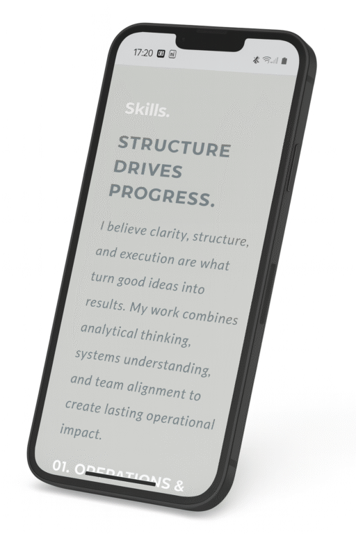 Developing this site was a strategic step in shaping my personal brand and expanding my digital presence. It created a clear, cohesive space where I can share my experience in digital transformation and operations, while also curating personal projects that illustrate how I think, build, and lead.